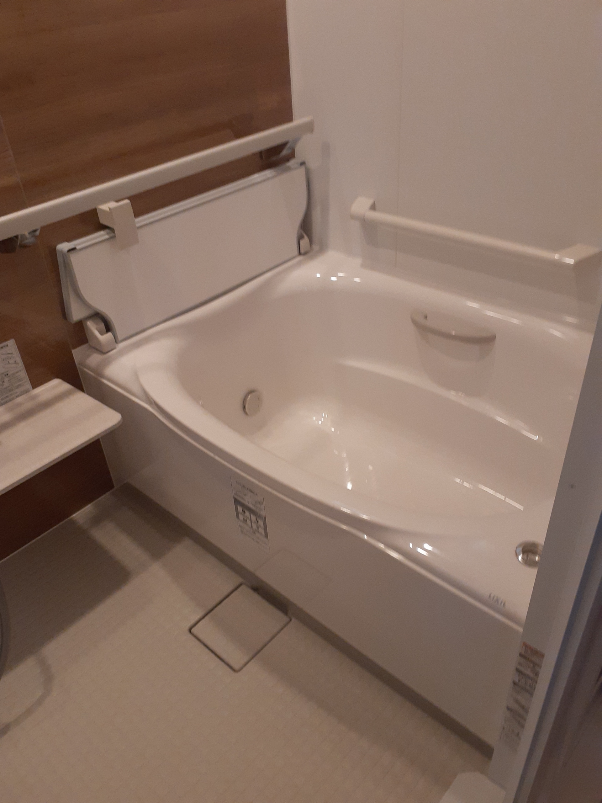 タイルの浴室から暖かいお風呂に、ご年配のご夫婦の安心・安全な浴室にしたいとご希望でした。