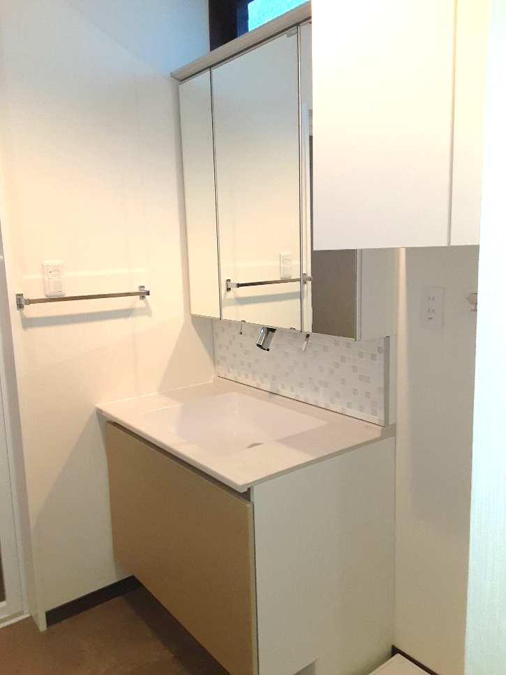 洗面化粧台は使いやすさと上質なデザインを両立したルミシスボウル一体タイプにお取替えしスタイリッシュな洗面空間になりました。